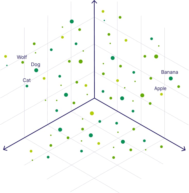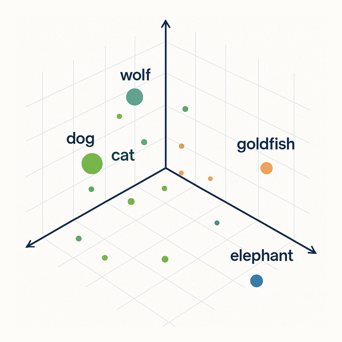 2. The word "wolf" would be relatively close to "dog" (they're related canines)