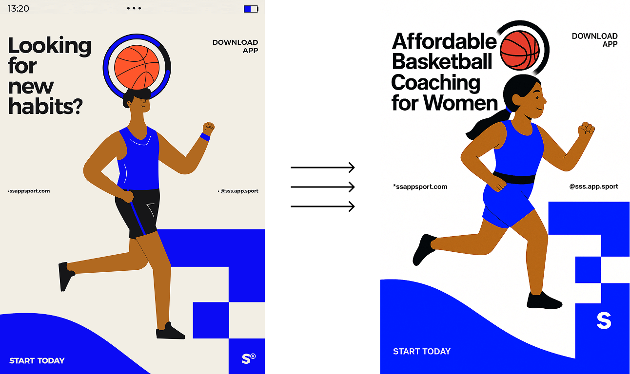 For example, imagine you're running an AD campaign for Woman Basketball Coaching and you found an illustration you like on a site like Freepik: