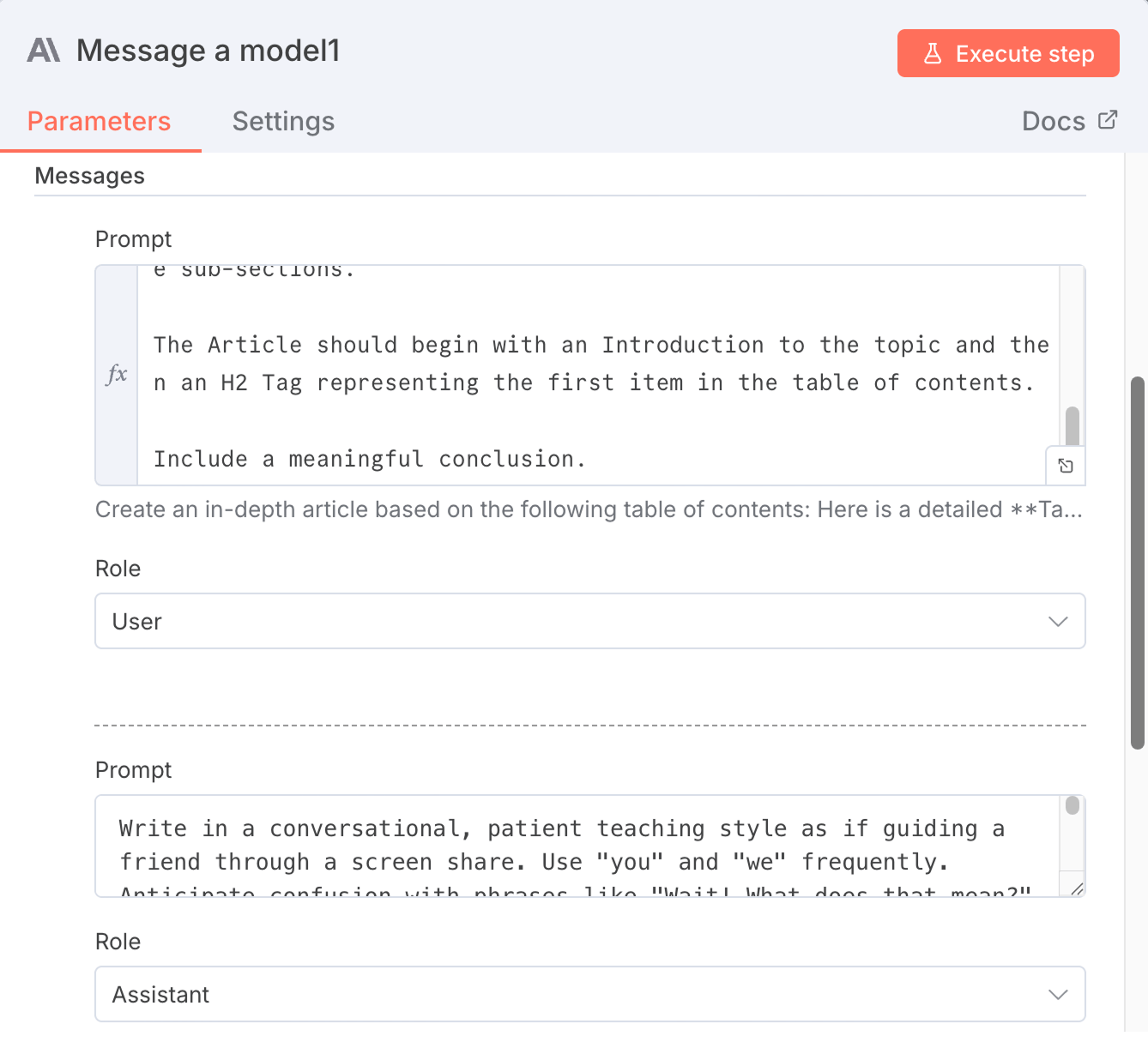 - Next, all four unique tables of contents will be provided to Claude, and they will generate four unique articles.