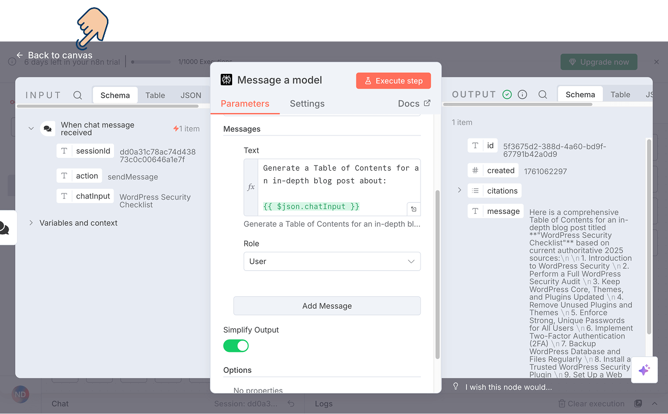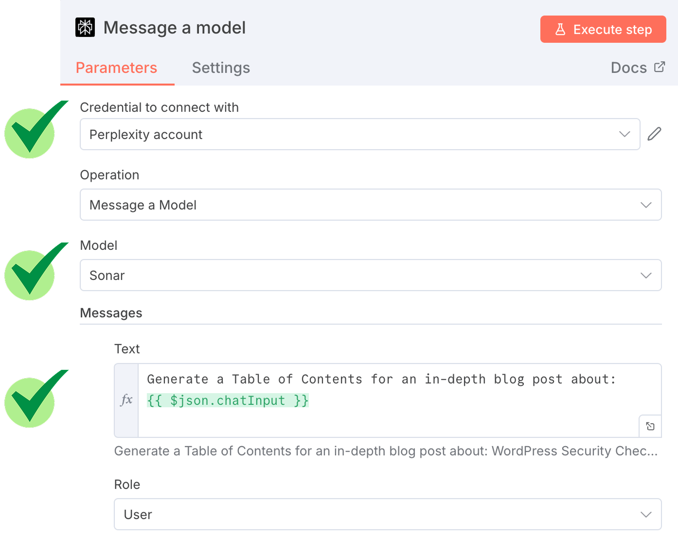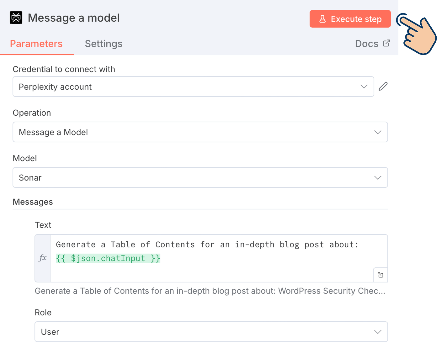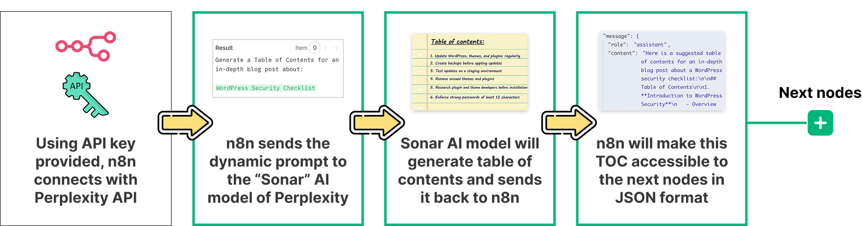And if you remember, the Perplexity node expects us to provide a topic so it can generate a table of contents for the article.