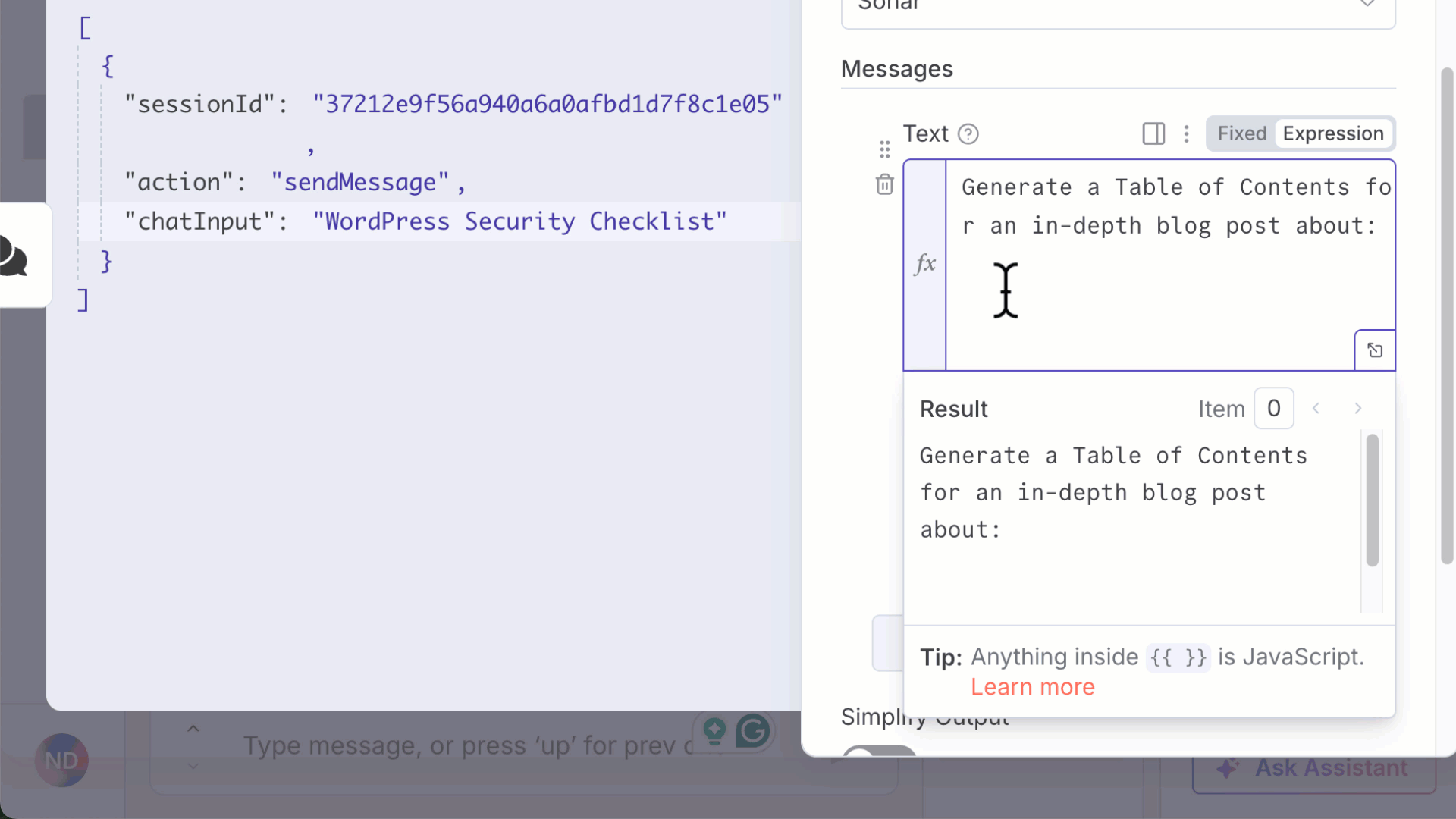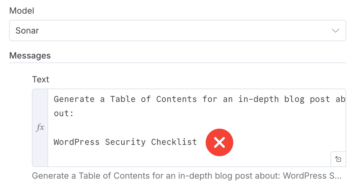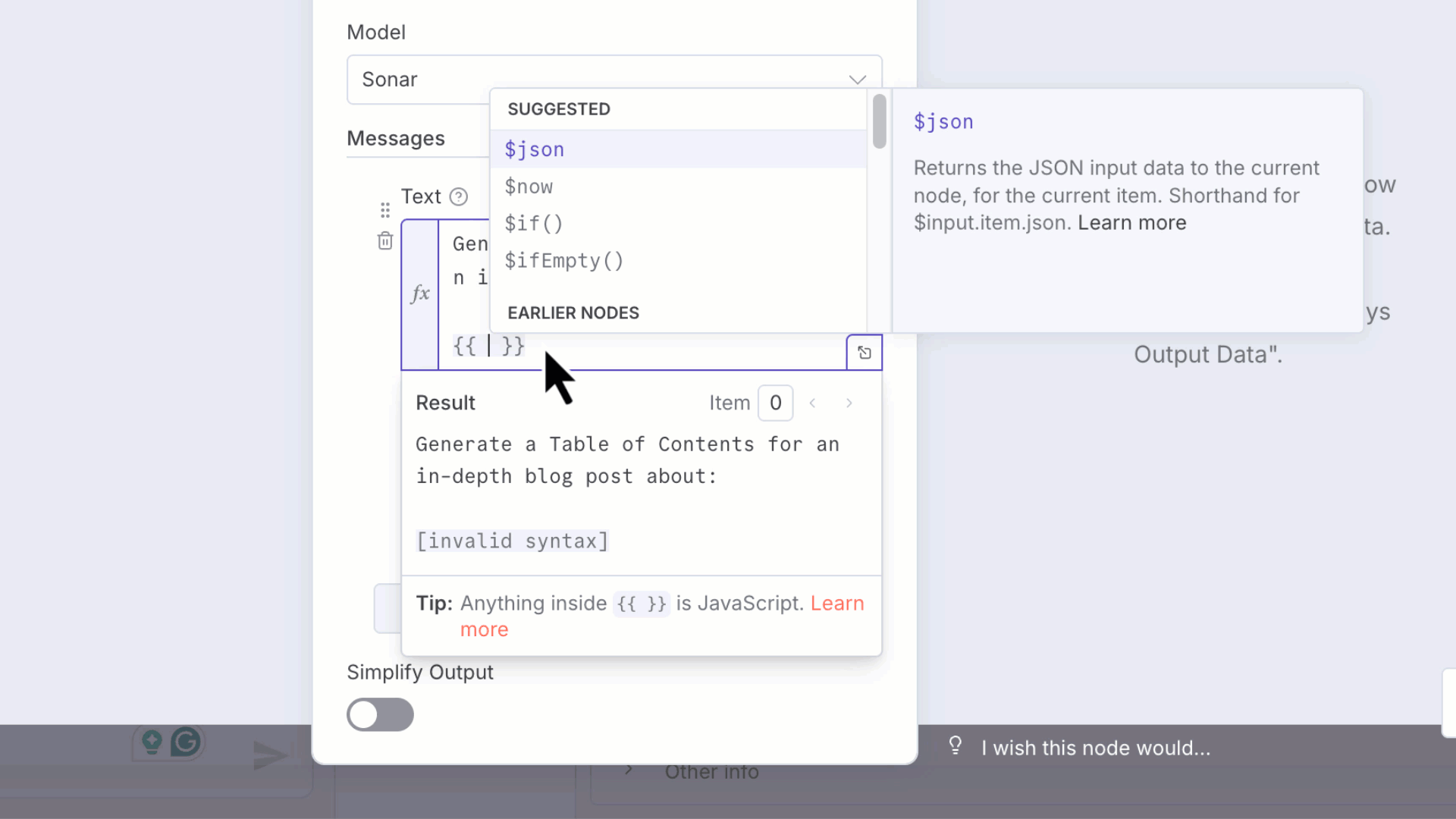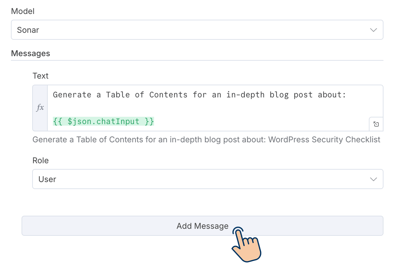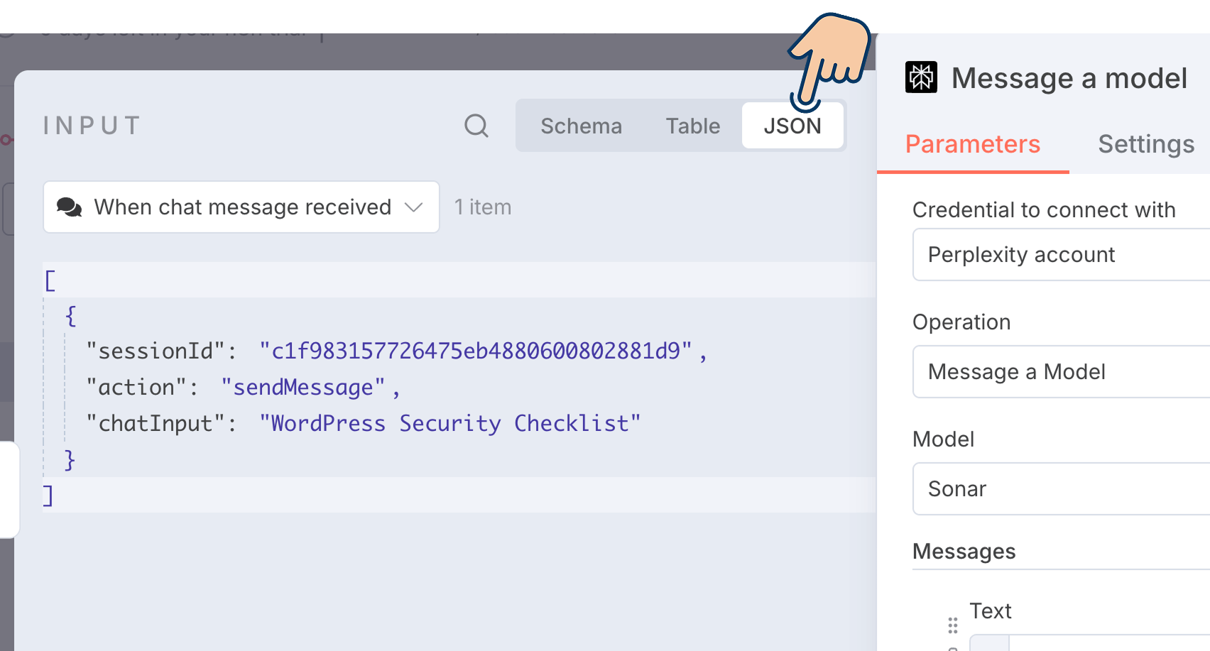 And if you remember, the Perplexity node expects us to provide a topic so it can generate a table of contents for the article.