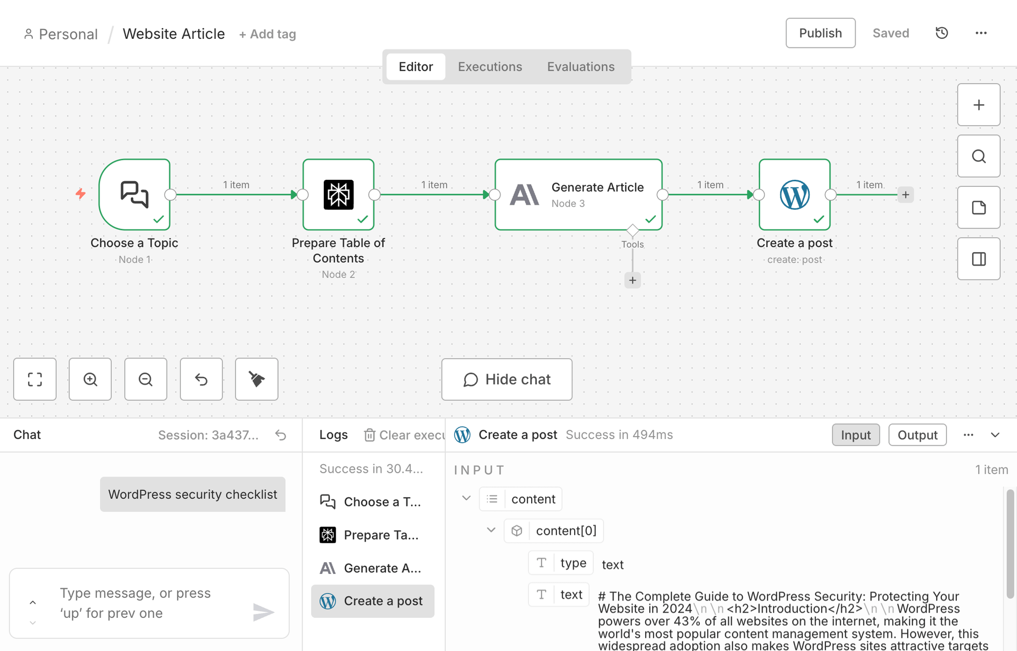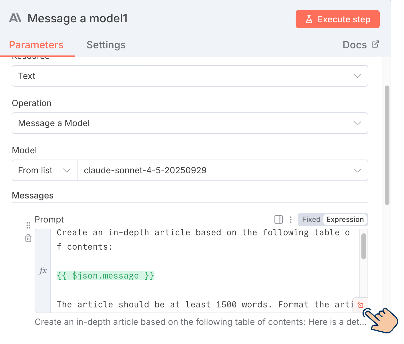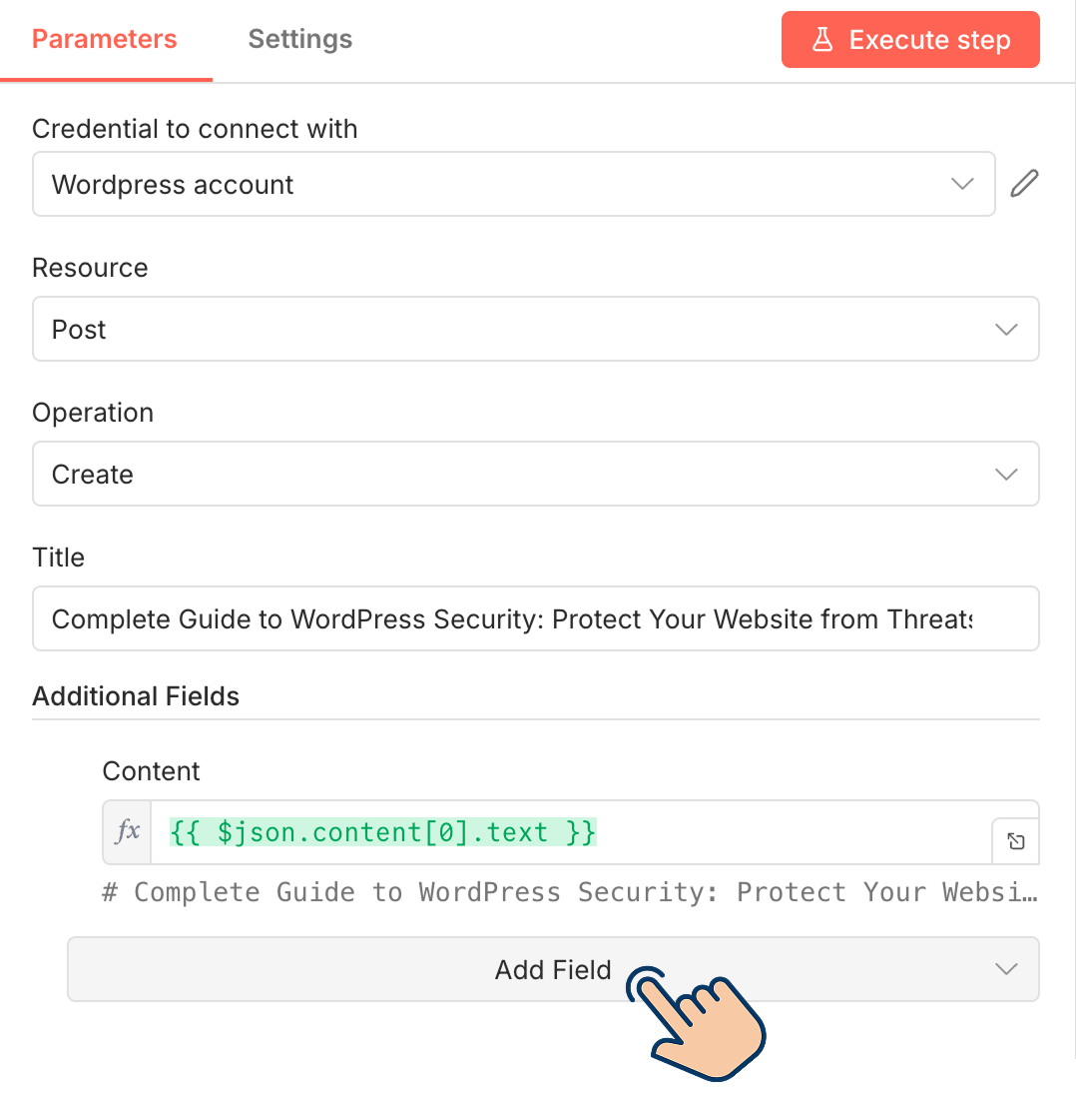 The Challenge: Generate a unique title for each article generated by Claude and use it dynamically inside the WordPress node