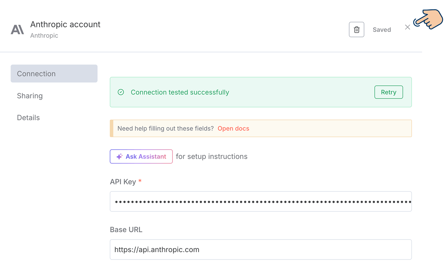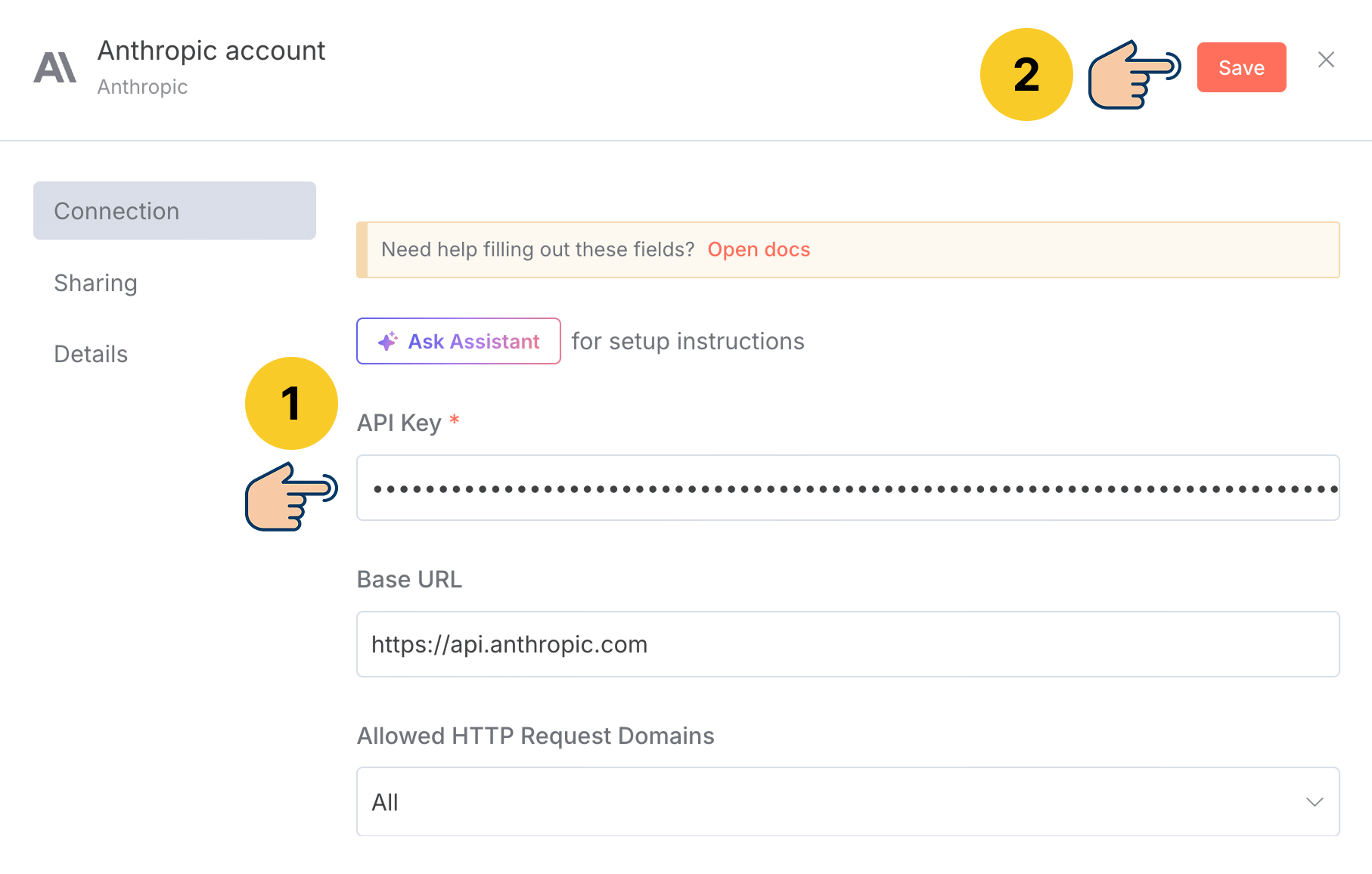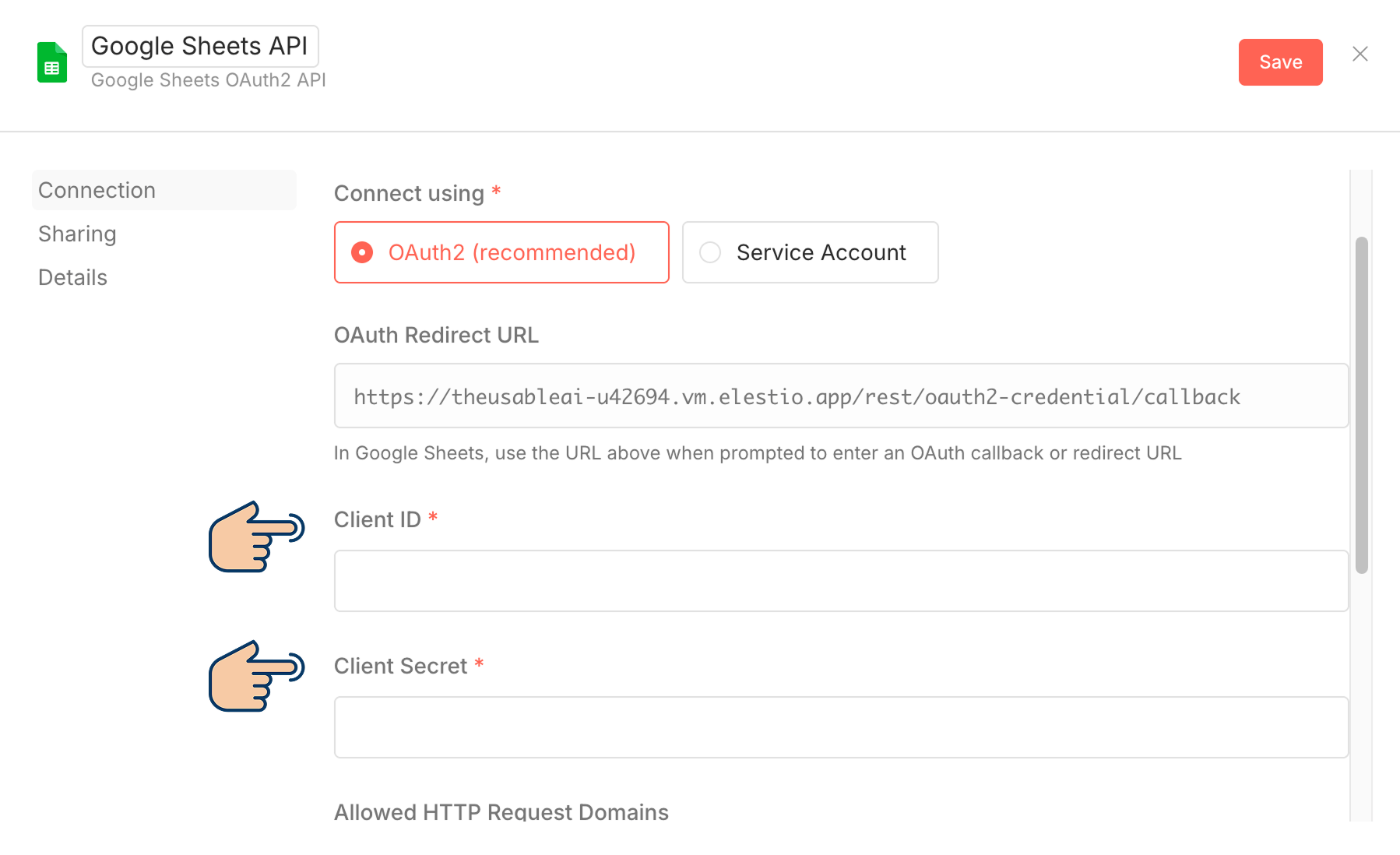 Please read the article, create Google Sheets credentials, add them to the Credentials screen, and come back here.