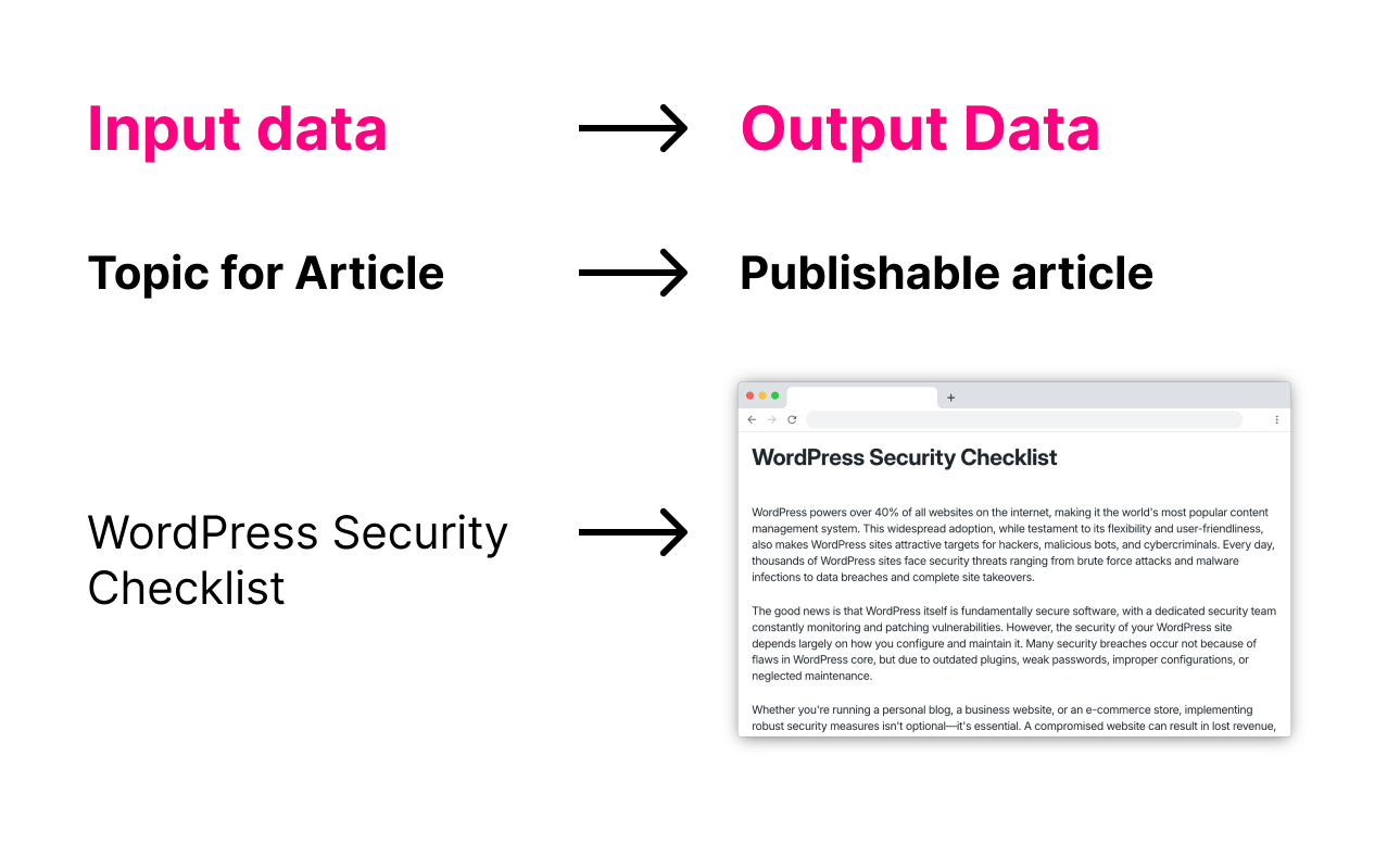 This also means that when automating this workflow inside n8n, it is important that we provide input data to our automation so that it spits out the output data: