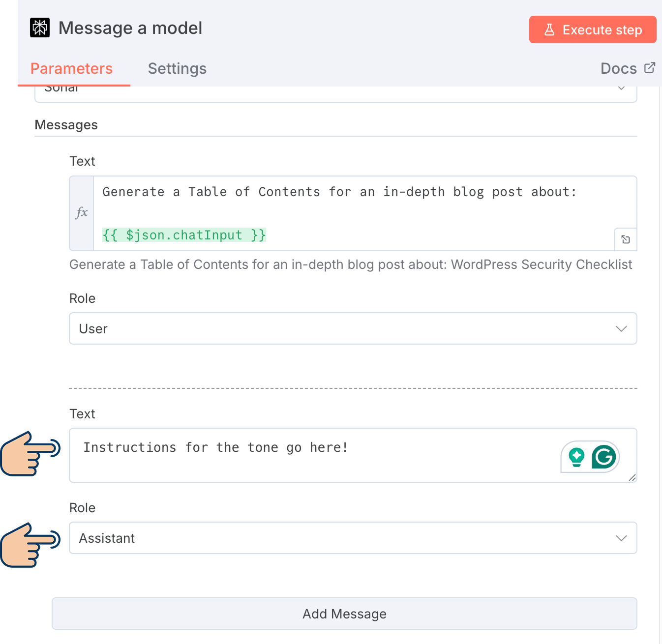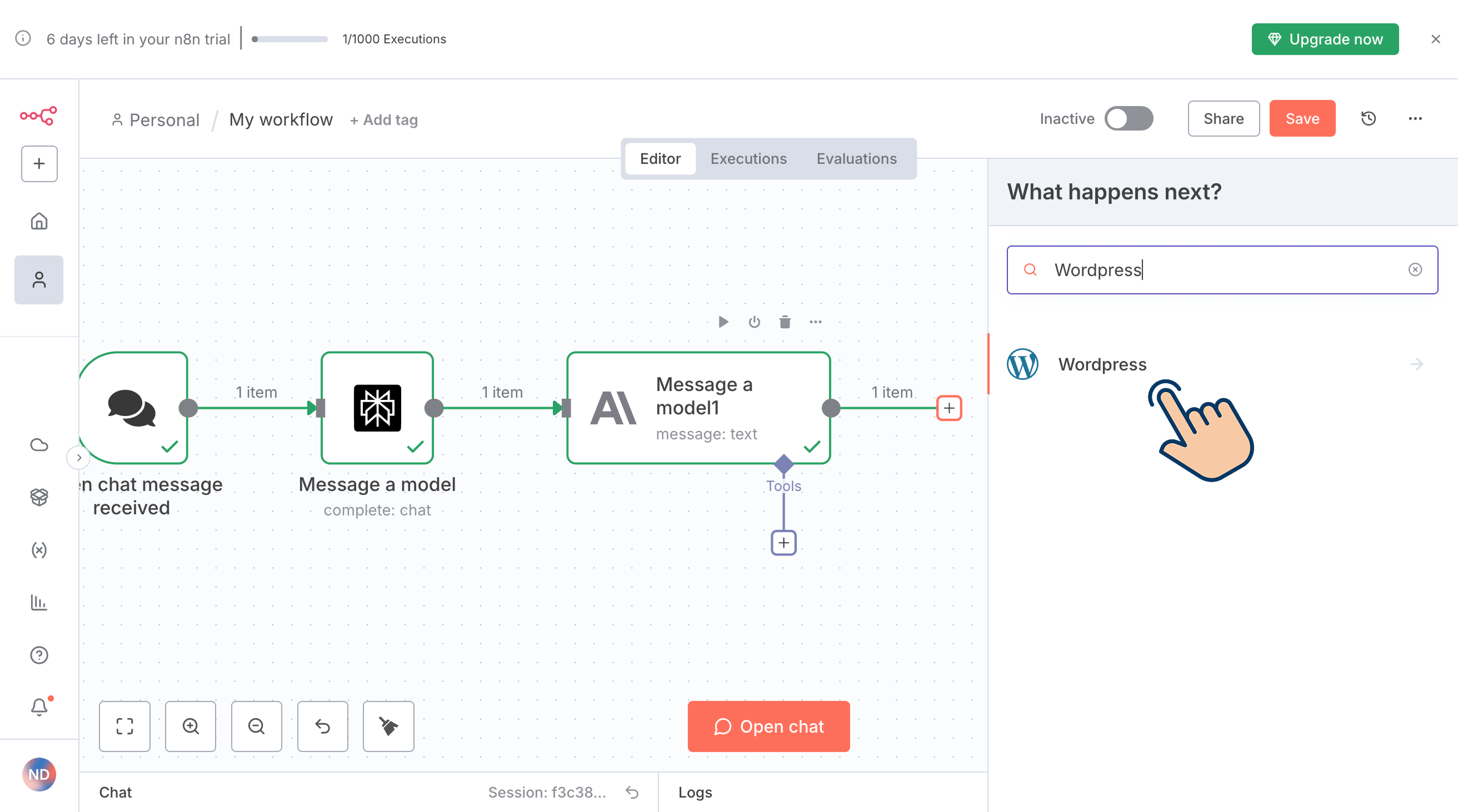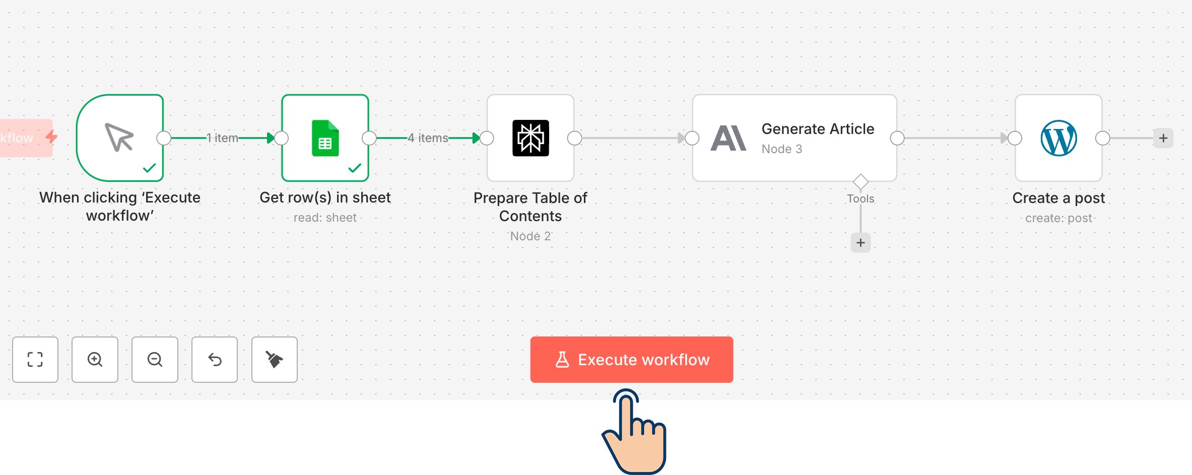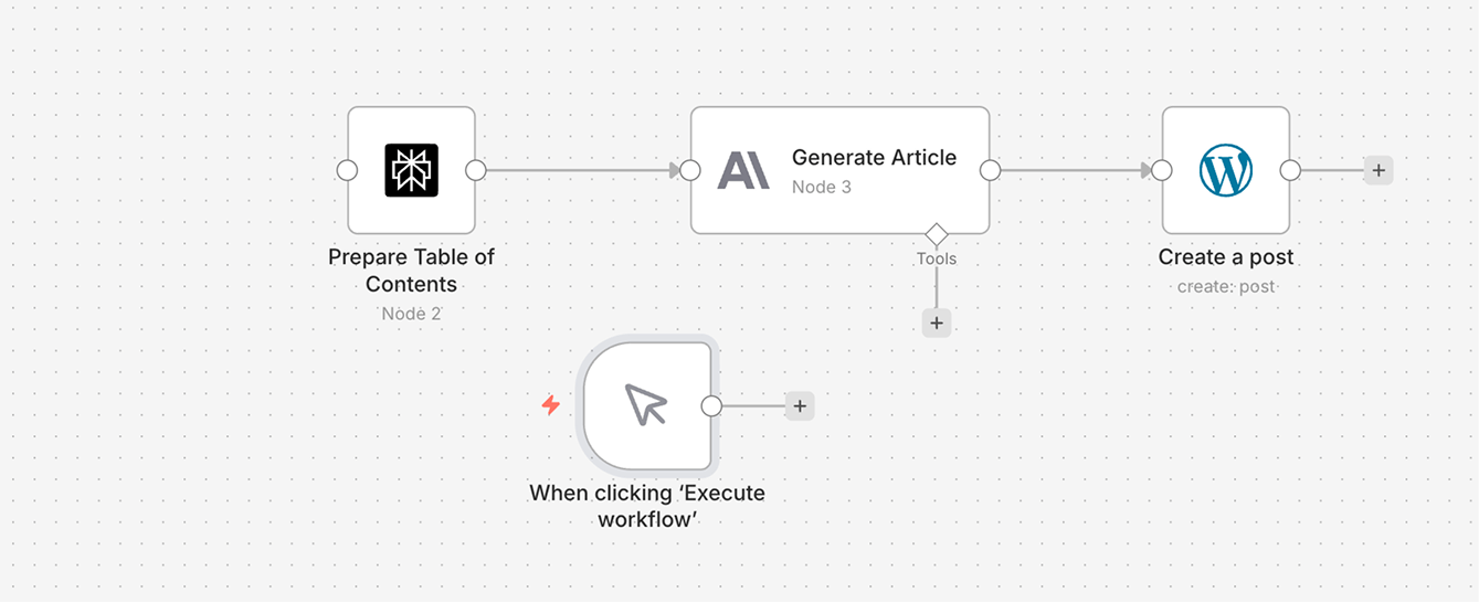 Inside n8n, each step of a workflow is performed by adding a node to the automation pipeline