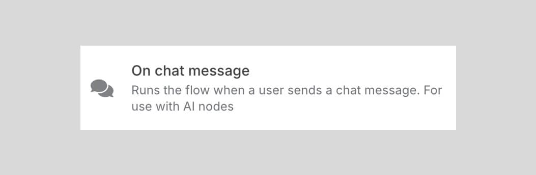 For example, if you are designing a workflow for website live chat support, you should choose "On chat message" as the trigger node.
