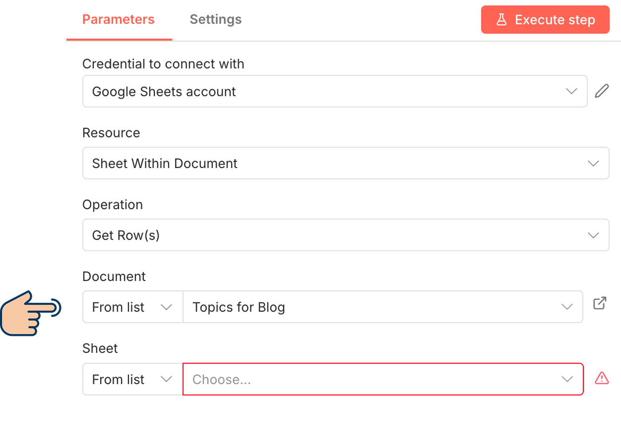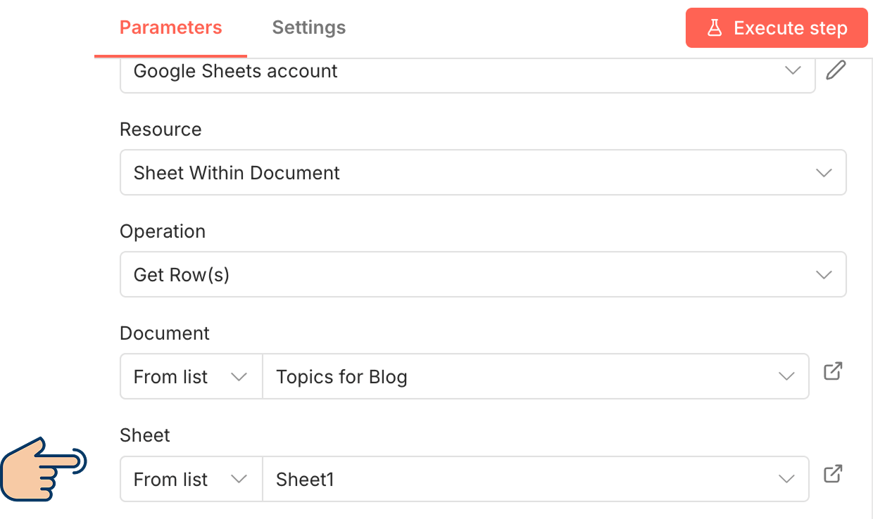 Now, let's configure the remaining options so that we can access the topic list from Google Sheets and provide it as input to Perplexity AI.