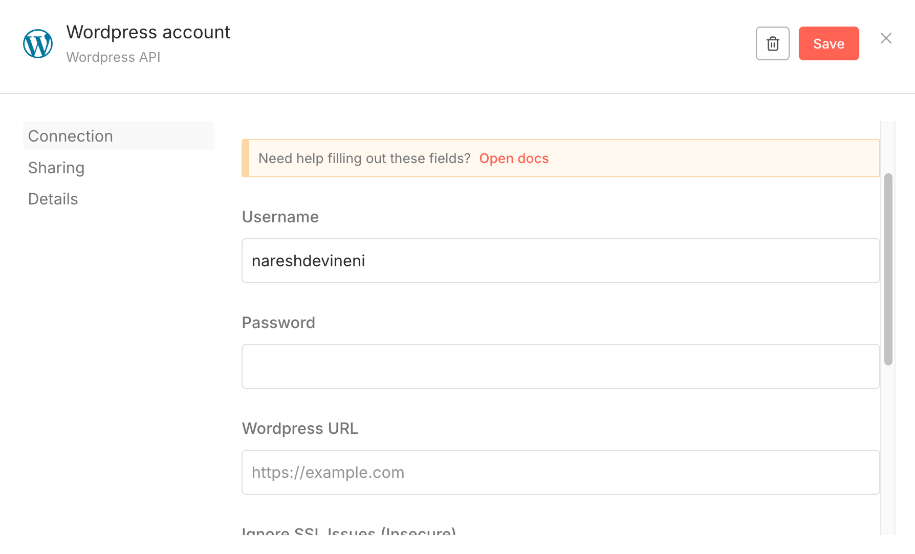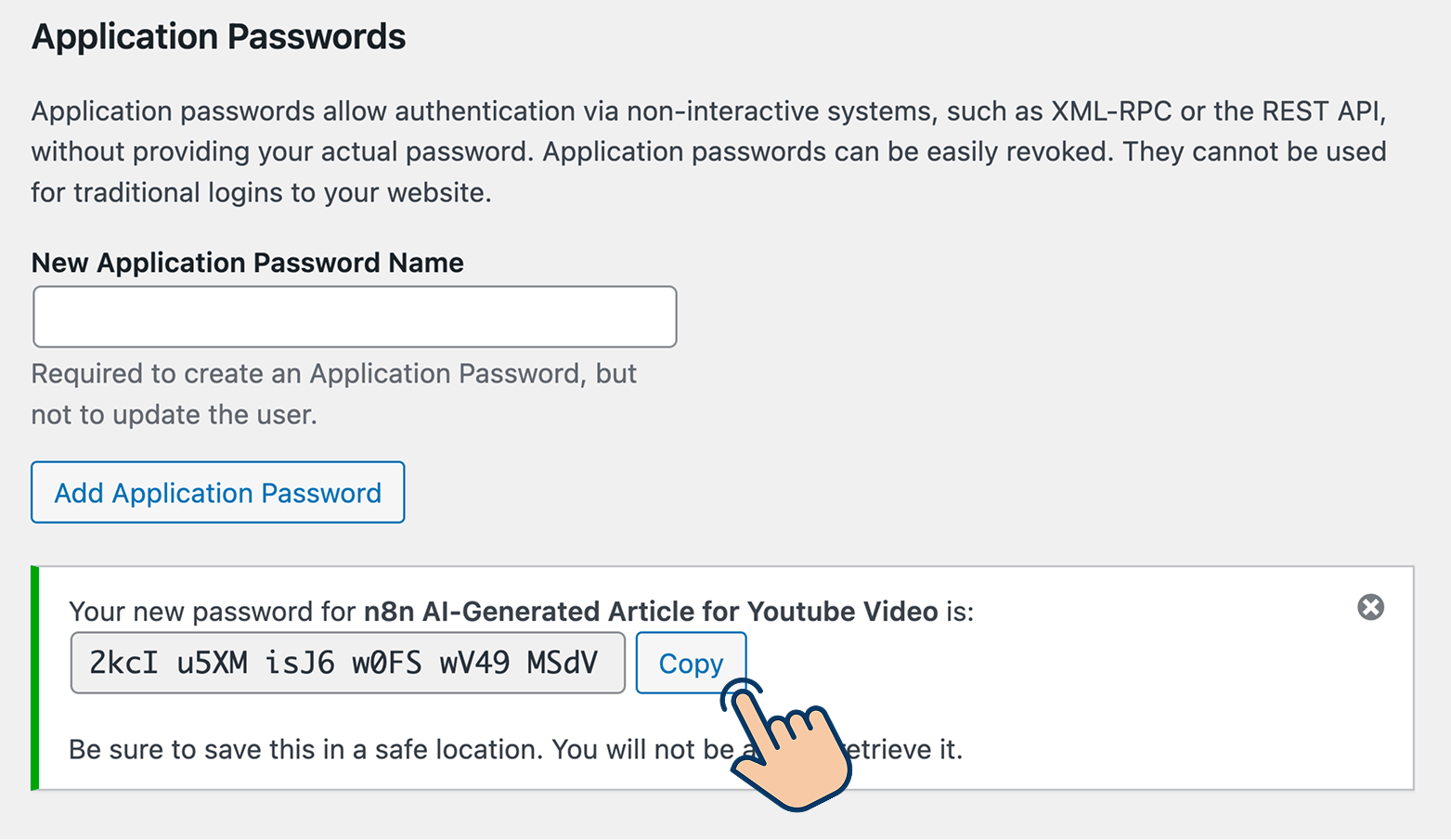 - Application password - WordPress required us to create an application password to access its functionality via the API.