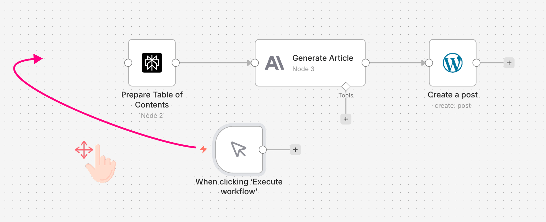 To do this, click and drag the "Plus" icon of the manual trigger to the right until it attaches to the Perplexity node.