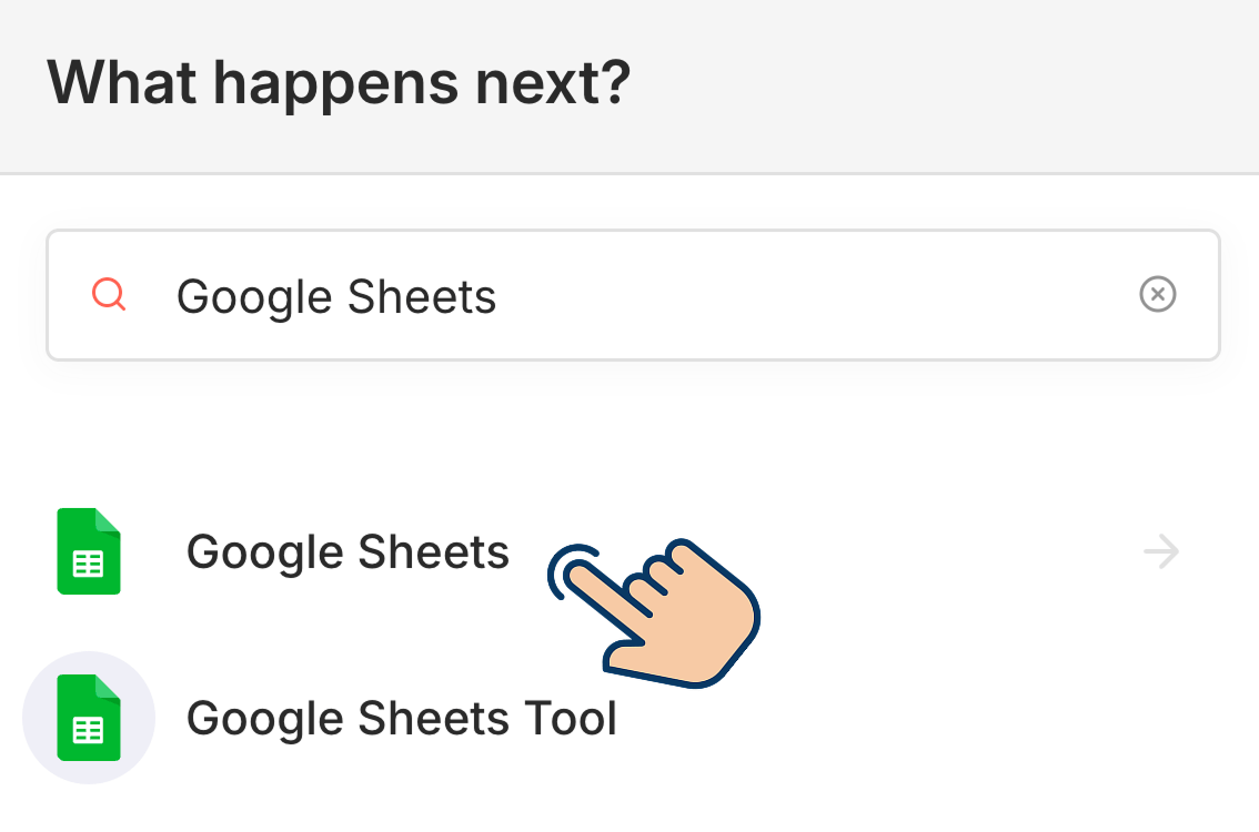 Next, search for "Google Sheets" and click on it to access its nodes: